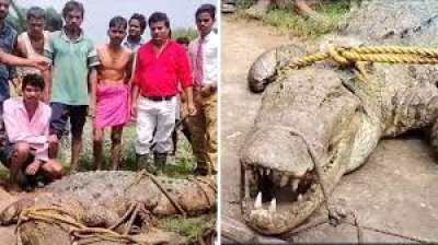 गाँव से लगे खेत में देखा गया विशालकाय मगरमच्छ मचा हड़कप