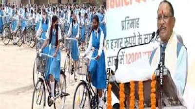 बीजेपी सरकार तेंदूपत्ता तोड़ाई के लिए आदवासियों को फिर चरण पादुका बांटेंगी, वहीं नोनी (छात्रायें) साइकिल पर सवार होकर स्कूल जा सकेंगी