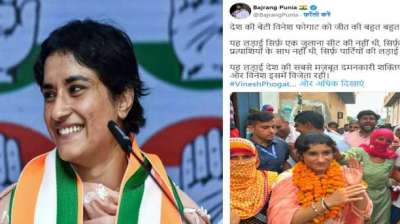 विनेश फोगाट की विधानसभा चुनाव जीत, बजरंग पुनिया ने किया सेलिब्रेट