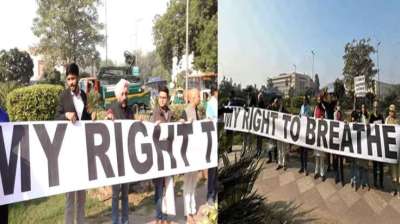 दिल्ली में प्रदूषण के खिलाफ सड़कों पर उतरे लोग, 'सांसों के लिए संसद चलो' प्रदर्शन