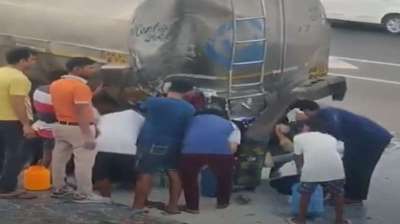 टैंकर-ट्रक की टक्कर के बाद मेरठ एक्सप्रेस वे पर दूध की लूट, ड्राइवर की लाश पड़ी रही